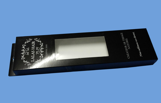 Kotak karton lipat bermerek ekstensi rambut berkilau dengan jendela